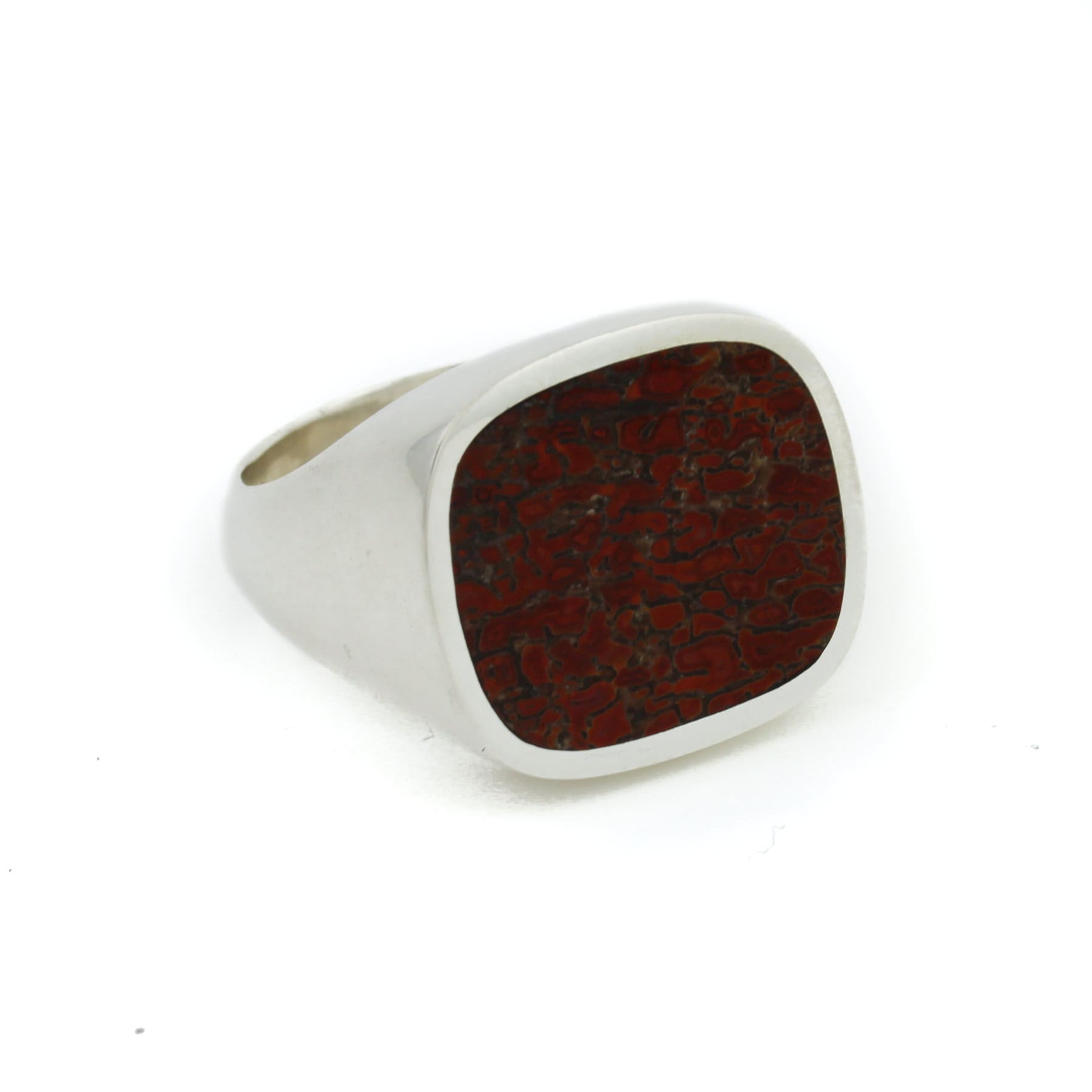 Red Dinosaur Bone X Square Cut Inlay Signet Ring Etsy Uk